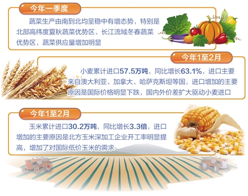 我国小麦进口以品种调剂为主,年度进口量相对稳定。唐珂说,预计随着今年我国优质专用小麦产量的增加,进口将保持在相对合理水平,全年进口量应该不会超过去年。玉米价格已与国际市场接轨,再加上在收购期结束后国家将投放储备,大量进口既缺乏价差动力,也没有供给缺口因素,预计全年进口量有望低于去年水平。