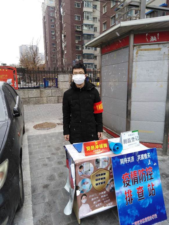 2月22日星期六上午,机关第一党支部史东峰同志到吉林街道安乐社区卡点值班站岗,代表省供销社深入社区参加防疫工作。