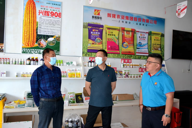 6月16日,于国廷一行首先来到北大荒公司下属网点——德惠市朱城子镇嘉桐农资经销处,了解到镇里共有16个村,约500垧地,此网点累计稳定客户近400户,一年销售北大荒化肥约400吨,是店里销量最好的品牌。之后,一行人又来到大青咀镇杨春明农资经销处调研。经销处负责人杨春明采用综合服务的营销模式,在大青咀镇及周边地区开展农药、种子、化肥经销及无人机飞防等多项业务。镇里共有15个村,杨春明凭借忠厚的人品和良好的商业信誉在当地拥有两个庞大的客户群近一千人,化肥销售量每年能达到近两千吨,是镇里农资销售的典范。