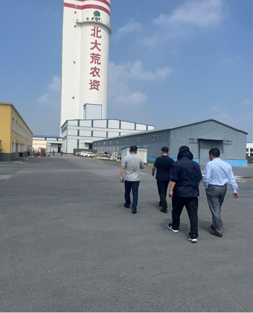 走访两处经销网点后,一行人来到北大荒位于德惠市米沙子工业集中区的总部。2020年12月北大荒公司高塔造粒项目建成投产,截至目前生产能力可以达到45万吨/年。2021年末,省供销集团公司牵头与吉林北大荒公司成立联合体共同承接省级化肥临时储备10万吨任务,在双方共同努力下,超出任务量20%顺利完成储备工作,期间累计销售12.46万吨化肥,真正做到让利于民,切实发挥了供销系统稳价保供的主渠道作用,使农民春耕无忧。
