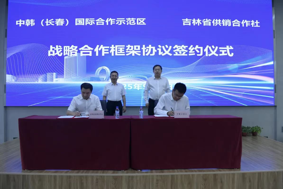 9月3日,吉林省供销合作社、中韩(长春)国际合作示范区举行战略合作框架协议签约仪式。省供销合作社理事会主任、党组书记刘高峰,中韩示范区党工委书记刘乃军出席签约仪式并围绕合作路径与重点任务展开深入交流座谈。