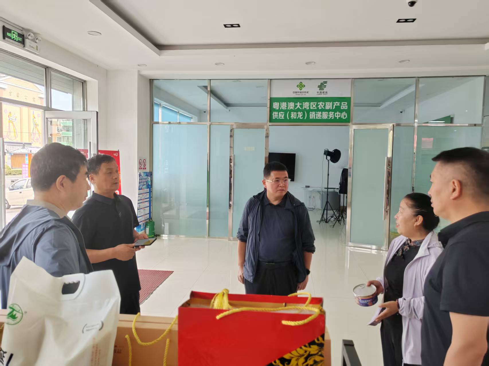 洪强带领省社驻和龙市西城镇卧龙村第一书记、驻崇善镇大洞村第一书记等一行,先后实地考察了和龙市供销社与邮政共建的粤港澳大湾区农副产品供应(和龙)销递服务中心、西城镇诚意生产资料综合商店农资经营和农业社会化服务情况,要求和龙市社利用“供邮”合作试点契机,积极推动双方业务融合共进,加快推进县域流通体系建设。