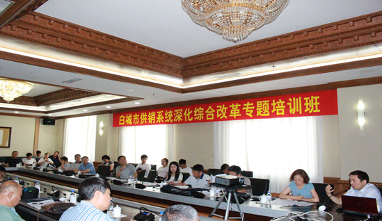 2017年6月30日,白城市供销干部学校举办白城市供销系统深化综合改革专题培训班。白城市供销合作社张东主任主持会议,市社全体机关干部、市社直属企事业单位主要领导、各县(市、区)社主任及项目分管主任、负责人参加了此次培训。省社机关党委委员、第五党支部支部书记冯玉春同志受邀出席了专题培训班。为贯彻落实省社吴晓光主任对白城地区