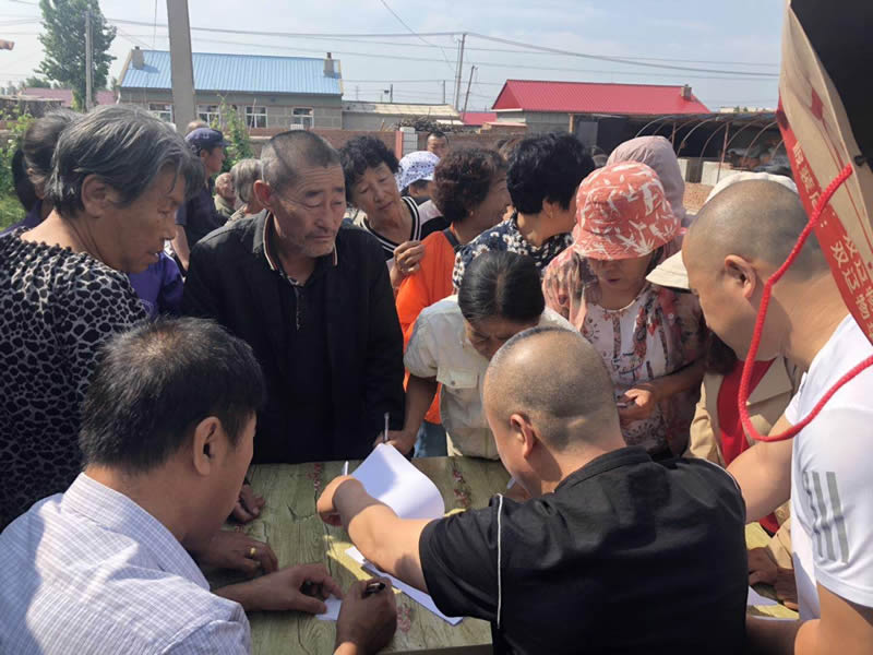 近日,双辽市供销社机关全体成员来到卧虎镇五星村,为包保的贫困户发放鸡雏和饲料。