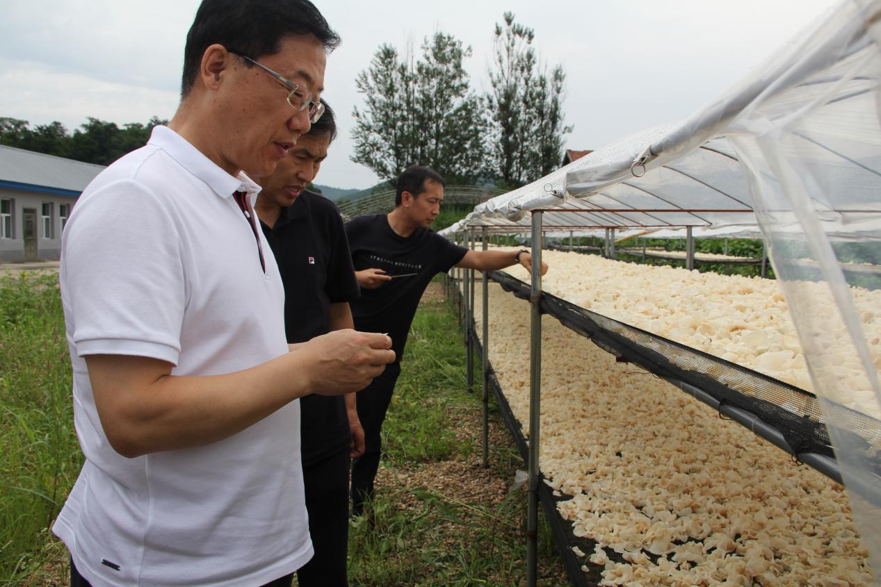 随后,白山市供销合作社主要负责人与驻村工作队对玉木耳产业项目进展情况进行了实地踏查。为培育贫困户自我发展能力,北沟村试种了“黄金菇”——玉木耳,积极鼓励村民心热起来,依靠自己双手摆脱贫困,增加村集体收入。产业扶贫是稳定脱贫的根本之策,因地制宜大力发展可持续产业项目,真正走出一条“红色那尔轰、红色玉木耳”的特色产销之路。