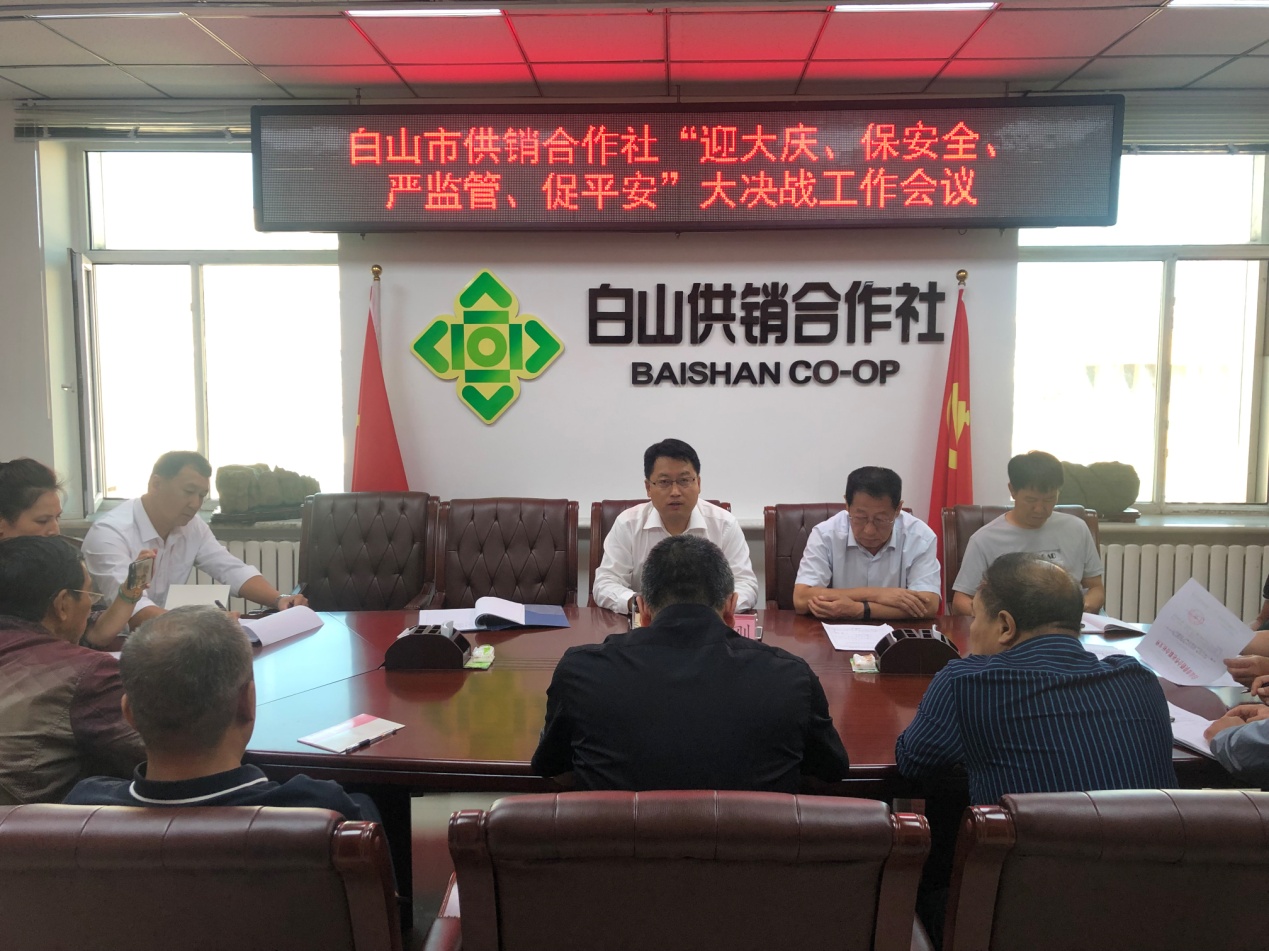 为确保全市供销系统“夏秋百日攻坚”安全整治专项行动和“防风险保平安迎大庆”专项行动有序开展,全力维护新中国成立70周年期间安全生产形势稳定,近日,白山市供销社召开“迎大庆、保安全、严监管、促平安”大决战工作会议。