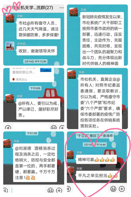 抗击新冠肺炎疫情以来,白山市供销合作社坚决贯彻落实中央决策部署和省委、市委工作要求,把疫情防控工作作为当前最重要的工作来抓,充分发挥党组织在疫情防控中的战斗堡垒作用,做到了主要领导亲自挂帅,班子成员冲锋在前,党员干部恪尽职守,体现了一个又一个平凡举措和责任担当。