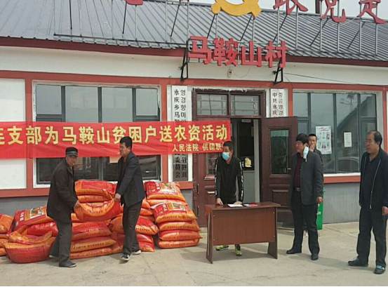 为全力打做好“四不摘”脱贫攻坚工作。4月17日,安图县供销合作社联合社联合县人民法院为马鞍山村50户贫困户送去了化肥50袋,总价值7500元的春耕生产物资,切实做到摘帽不摘责任、摘帽不摘政策、摘帽不摘帮扶、摘帽不摘监管的原则,同时解决困难群众春耕生产之需。