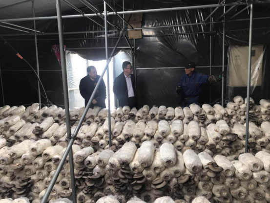 之后,陈立英一行来到孤山河村菌类生产基地,实地考察产业扶贫情况,详细了解了蘑菇的种植、市场供应、贫困户收益等情况,并对产业扶贫提出指导意见。