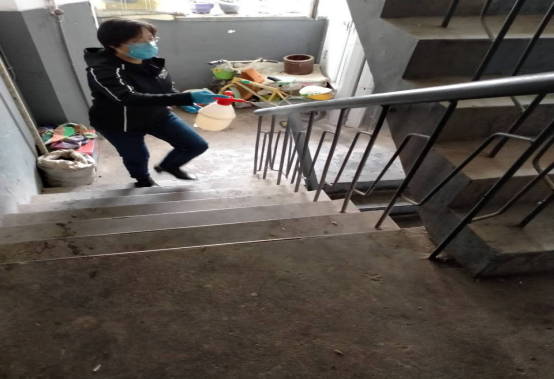 长春市供销社职工在泰山社区进行居民楼楼道消杀工作