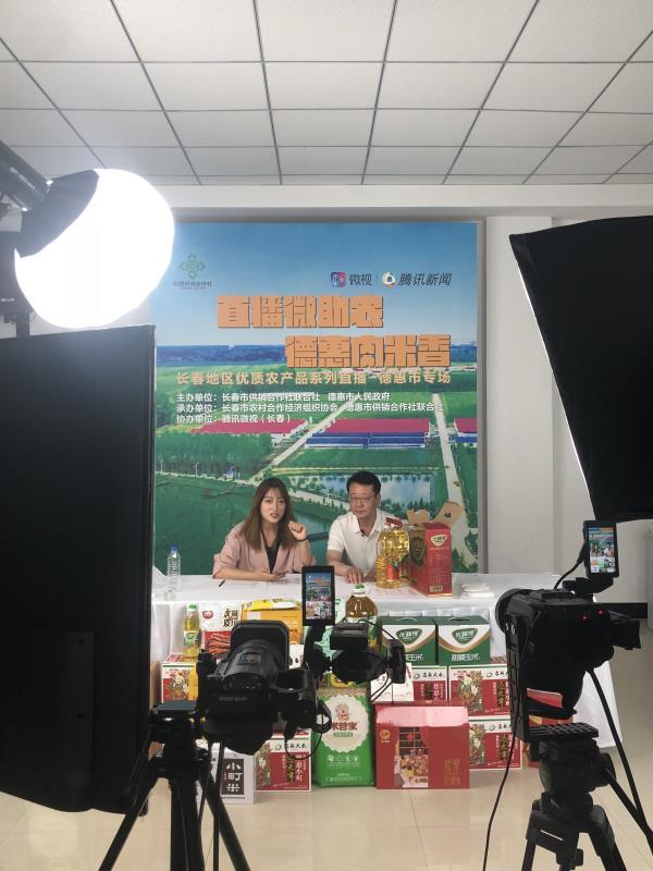 长春市供销合作社联合社与腾讯微视深度合作,自6月13至8月22日开展农产品系列直播活动,共六场直播,分别在德惠市、双阳区、农安县、九台区、榆树市和第十九届中国长春国际农业•食品博览(交易) 会设置专场。6月13日14时,以“直播微助农,德惠肉米香”为主题的首场线上直播活动在德惠市正式拉开帷幕。长春市副市长贾晓东出镜致辞,德惠市委常委、副市长丁日伟、德惠市粮食和物资储备局局长徐志军、德惠市农业农村局局长李伟哲、德惠市畜牧业管理局局长王兆辉亲自走入直播间,将德惠市优质农产品推向全国市场。