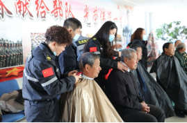 在市光荣院,老干部和年轻干部志愿者们为老人们送去水果等慰问品,与老人们亲切交谈、嘘寒问暖,对老兵们在军旅涯中付出的汗水与艰辛致以崇高的敬意。同时,志愿者们帮助老人们理发、剪指甲,并献上一台精彩的文艺演出。