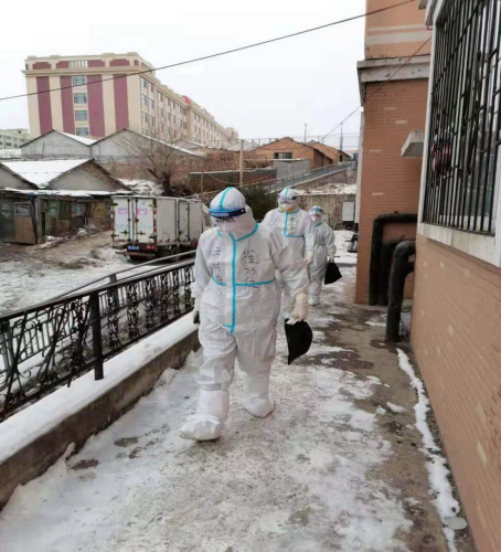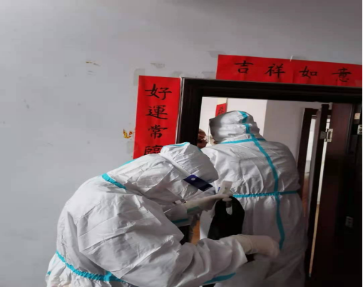 近日,通化市社2名机关干部和1名医护人员,在完成光复社区样本采集工作之后,紧急调配到前进社区支援防疫工作,为行动不便的老人进行入户采样。小区位于半山腰,没有电梯楼,工作人员穿着厚厚的防护服,多次爬到6楼、8楼进门采样和信息登记,住户相隔较远且只能步行,忽冷和热导致眼镜上霜、全身湿透,但是为了节省试剂盒,大家一刻没有停歇,坚持把所有住户采集完毕,才回到社区休息。疫情就是命令,哪里有群众,哪里就有干部,危难时刻防疫干部冲锋在前,到一线奋战,守一方平安。
