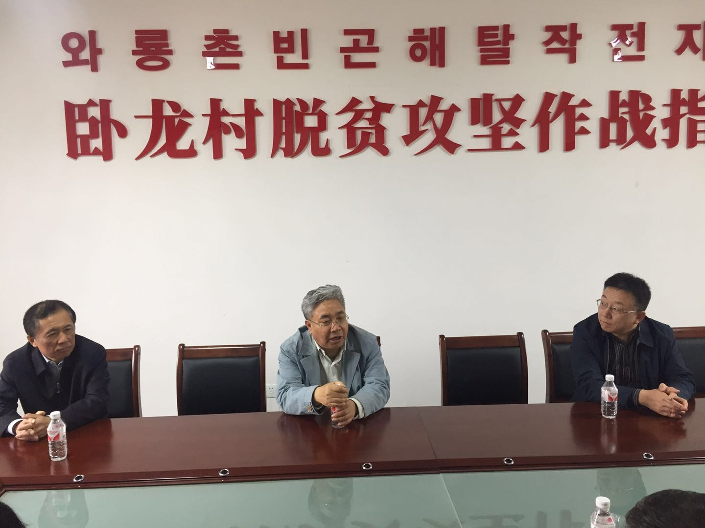 实地考察结束后,吴晓光在村部主持召开了座谈会。听取了省社驻村第一书记刘岩和卧龙村党支部书记刘春日就2018年以来卧龙村迎检验收、入户慰问、村集体收入、春耕轮作等扶贫和为农服务工作情况汇报,详细了解省社新调整的两名年轻驻村干部的工作和生活情况,充分肯定了驻村干部工作,对下步工作提出了明确要求。吴晓光强调,扶贫工作是各项重点工作中的重点,省社党组高度重视,始终把扶贫工作作为一项重要政治任务时刻扛在肩上。我们根据行业特点,认真谋划,精准施策,投入了大量的人力、物力和财力,在开展“输血式”扶贫的同时,把扶贫工作的重点放在了“造血式”的产业扶贫上,先后投入政策和资金发展的蜜蜂养殖、黄牛养殖、森林猪养殖,与其他经济实体合作开展的特产品加工项目都为贫困户和村集体带来了实实在在的收益,为贫困村实现整体脱贫提供了强有力支撑。同时,我们还围绕农村环境整治搞了垃圾集中收集管理,修建了垃圾场,投入了垃圾箱,为村安装路灯,修缮道路。搞好与贫困户的对接帮扶工作,解决贫困户实际