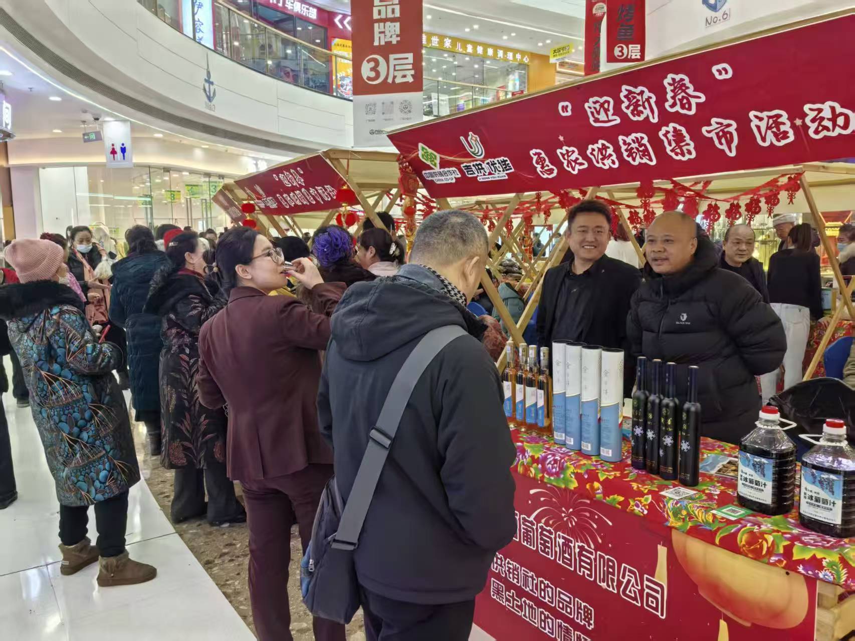 在新春元旦到来之际,吉林省供销合作社2025年系列供销集市活动完美收官。作为本年度最后一场的“迎新春”惠农供销集市活动于12月24日-26日在长春市车城万达广场红火举行,本次活动由吉林省供销合作社主办,长春市供销合作社联合社协办,现场展示展销全省供销系统20余家企业百余种优质特色农产品。吉林省供销合作社二级巡视员王娟、长春市供销合作社联合社党组书记、理事会主任杨万来、长春市供销合作社联合社党组成员、理事会副主任马元克出席活动。