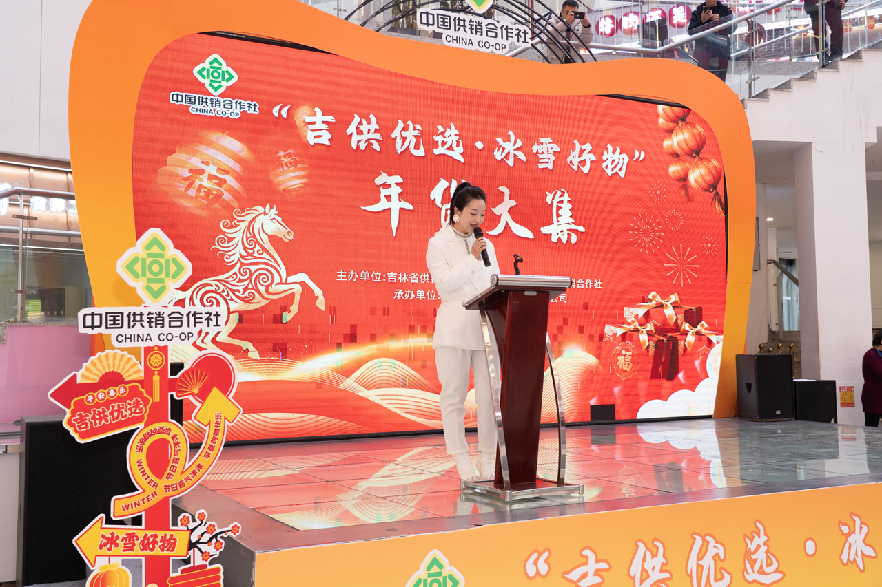 在品牌宣传片播放环节,镜头里的白山黑土物产丰饶,“吉供优选”品牌的品质魅力与供销系统服务三农的初心坚守,深深打动了现场观众。随后,吉林省供销合作社科教社团处处长宋寒登台,正式发布吉林省供销合作社2026年供销集市及品牌推介活动。