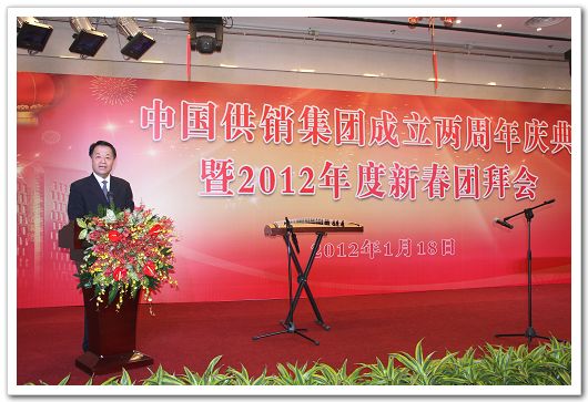 1月18日,中国供销集团成立两周年庆典暨2012年新春团拜会在京举行。总社领导杨传堂、李春生、顾国新和老领导李成玉、王如珍、刘环祥、张祥茂同中国供销集团干部职工欢聚一堂,共同庆祝中国供销集团成立两周年,共同庆贺龙年新春的来临。