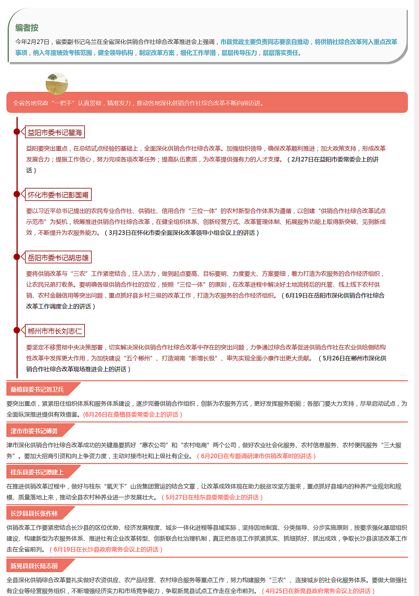 “一把手”精准发力供销改革——湖南各地党政主要负责人推动供销合作社综合改革纪实