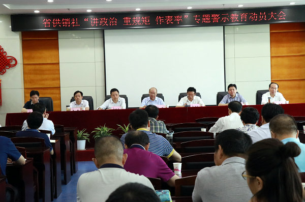 钱斌指出,全系统要统一思想提高认识,切实增强管党治党责任。要从讲政治的高度,充分认识省委开展“讲重作”专题警示教育的重要意义,深刻汲取“陈、杨、周”案和身边典型腐败案例的沉痛教训,进一步认清本质、肃清遗毒、廓清生态,切实发挥“关键少数”关键作用,深入推动“讲重作”专题警示教育向省供销社基层延伸,扎实推进省社“两学一做”学习教育常态化制度化向纵深发展。